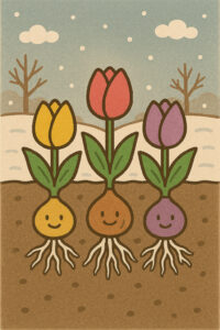 我が家では、チューリップの球根が芽を出して、ちょっとずつ伸びていて、